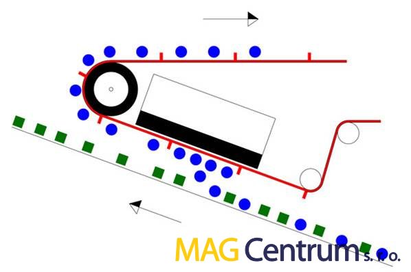 Elektromagnetický separátor – vodorovné uložení souběžně s pásem