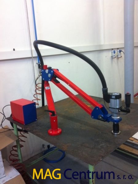 Stroj je vybaven vyváženým hliníkovým ramenem, které zajišťuje rychlé a přesné polohování nástroje na otvor. Díky lehké hliníkové konstrukce je stroj snadno přenosný. |